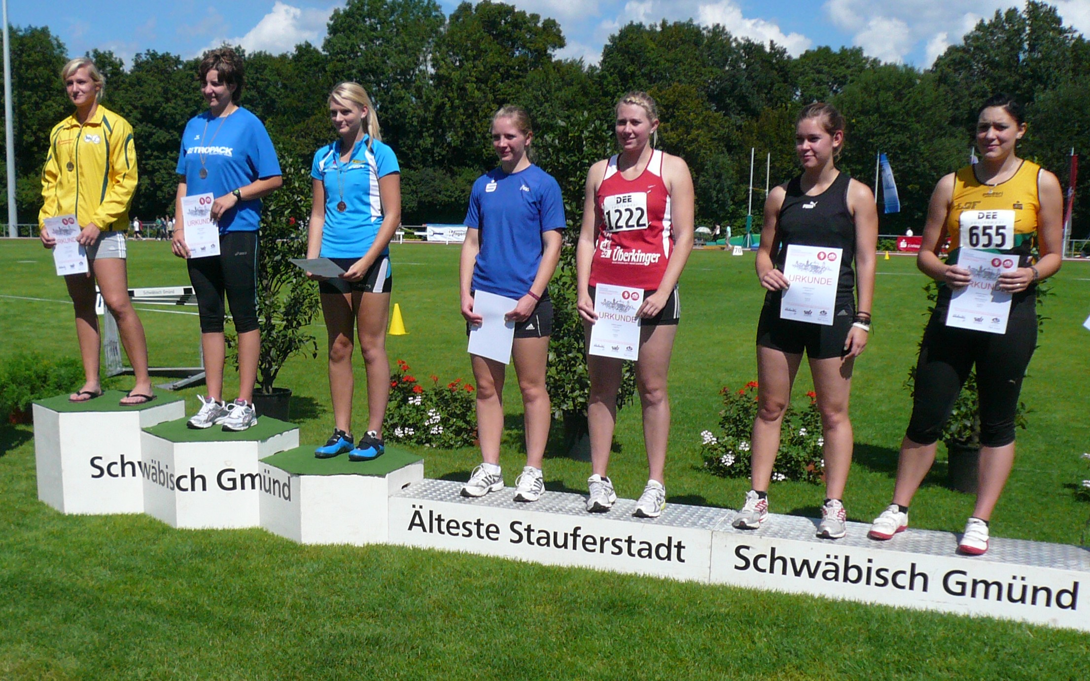 Ein weiteres gutes Endkampfresultat gab es für Judith Werner über die 400m-Stadionrunde. Mit der Zeit von 59,91 Sekunden blieb sie unter der 60-Sekunden Marke und lief knapp an Bronze vorbei auf Platz vier. Nach dreiwöchiger Urlaubspause kam auch Stabhochspringer Marian Reichert auf das Treppchen. Mit übersprungenen 4,30 Meter kam er auf Platz sechs. Auch im Feld der Aktiven-meisterschaften gab es für das LAZ Salamander zwei Vizemeisterschaften zu feiern. Der Vierte der Deutschen Juniorenmeisterschaften, Berthold Daubner, sicherte sich im Finale über die 110m Hürden in 14,35 Sekunden hinter Rayzan Wan Sofian vom LAZ Leipzig (13,99) die Silbermedaille. Dies schaffte auch Diskuswerfer Boris Dallinger. Mit 53,41 Meter im zweiten Versuch erreichte er seine Tagesbestweite und sicherte sich damit die Vizemeisterschaft hinter Michael Salzer von der TG Nürtingen der sich mit 56,45 Metern den Titel holte. Simon Bräuchle mit 7,06 Metern auf Rang fünf im Weitsprung der Männer und Michael Ade mit 60,47 Metern auf Rang Sieben im Speerwurfwettbewerb rundeten das gute Gesamtergebnis dieser Titelkämpfe ab.