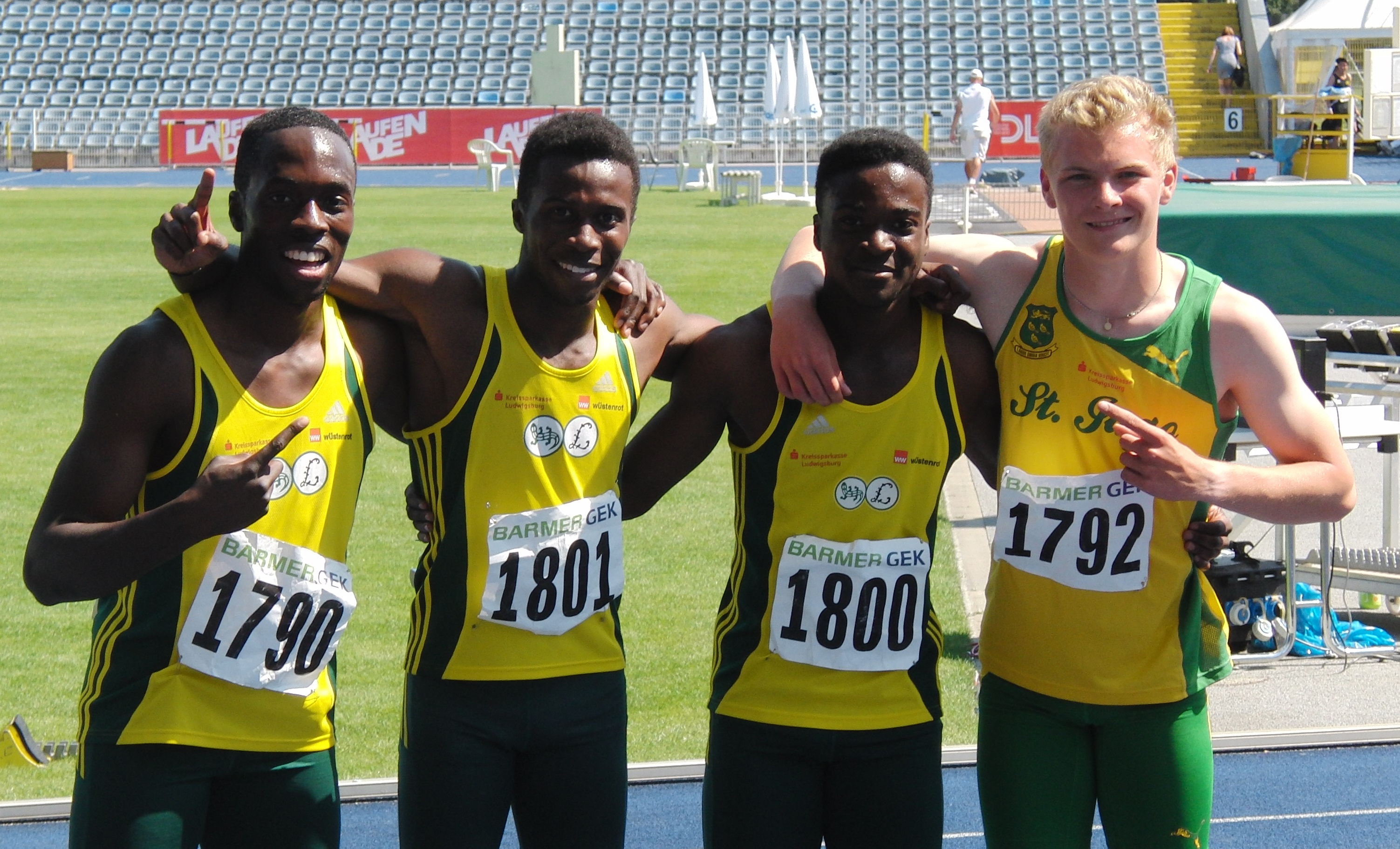 Mit dem Staffel-Gold war auch das großartige Wochenende von Henrik Hannemann perfekt, denn über 110 m Hürden hatte er am Samstag Silber errungen. Das Duell zweier hochveranlagter Hürdensprinter ging in die nächste Runde. Bei der U20-Europameisterschaft kürzlich in Schweden wurde Henrik Hannemann hinter Florian Lickteig vom TV Dudenhofen Dritter. Lickteig flog im Finale von Jena in 13,51 Sekunden zu einer neuen europäischen Bestzeit. Da war an diesem Tag nichts zu machen. Aber auch mit Silber in 13,67 Sekunden erfüllte Henrik Hannemann alle Erwartungen und Hoffungen auf ein Medaille und sezte einen starken Schlusspunkt am Ende einer Klasse Saison in seinem ersten Jahr in der U20-Klasse. Die U20-Mädchen des LAZ mit Leonie Hunker, Elisa Lechleitner, Naemi Benzinger und Lisa Nippgen konnten sich ebenfalls das Tiket für das 4×100-m-Finale ersprinten. Mit einer neuen Jahresbestzeit (47,55) liefen sie in den Vorläufen zur sechstbesten Zeit! Mit drei U18-Mädchen im Staffelteam bei der U20 war der 5. Platz in 47,60 Sekunden ebenfalls eine tolle Leistung. Über 100 Meter musste Lisa Nippgen (LAZ/12,40) leider schon im Vorlauf die Segel streichen. Für Josué Ndombasi, der im VL 10,85 bei leider etwas zu starkem Wind lief, blieb die Uhr im Zwischenlauf bei der neuen Bestleistung von 11,00 Sekunden stehen. Michael Nager verpasste in 10,79 Sekunden nur um zwei Hundertsel Sekunden das Finale. Israel Erema musste leider wegen eines Fehlstarts im Vorlauf passen. In der U18-Konkurrenz stellte Leonie Hunker mit 15,34 Meter eine neue persönliche Bestleistung im Kugelstoßen auf und wurde damit gute Vierte. Auf Platz 10 landete Kugelstoßer Luis Laufenberg mit einer Weite von 15,48 m. Im Hochsprung kam Michelle Förstel mit übersprungenen 1,68 m auf Rang neun.