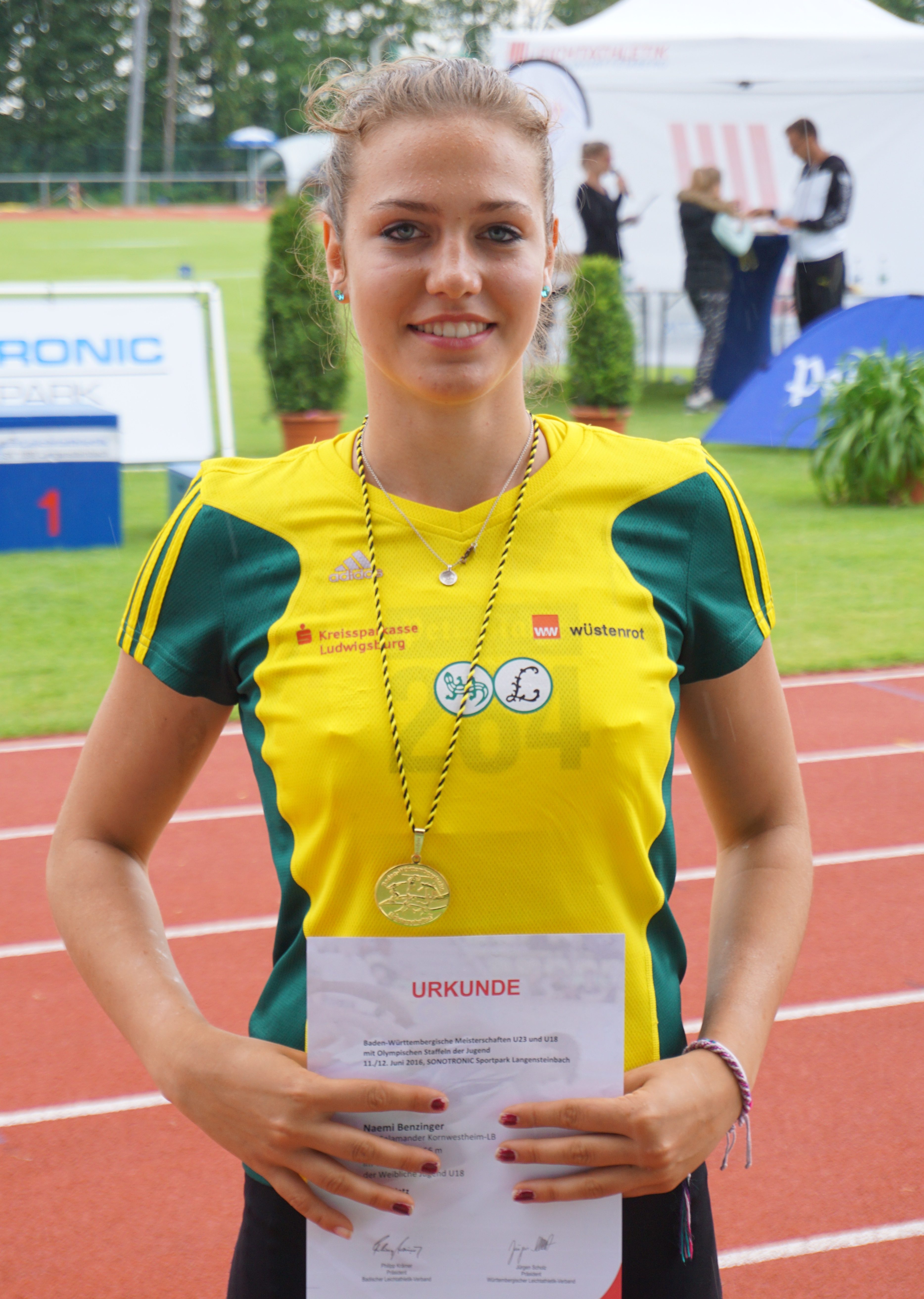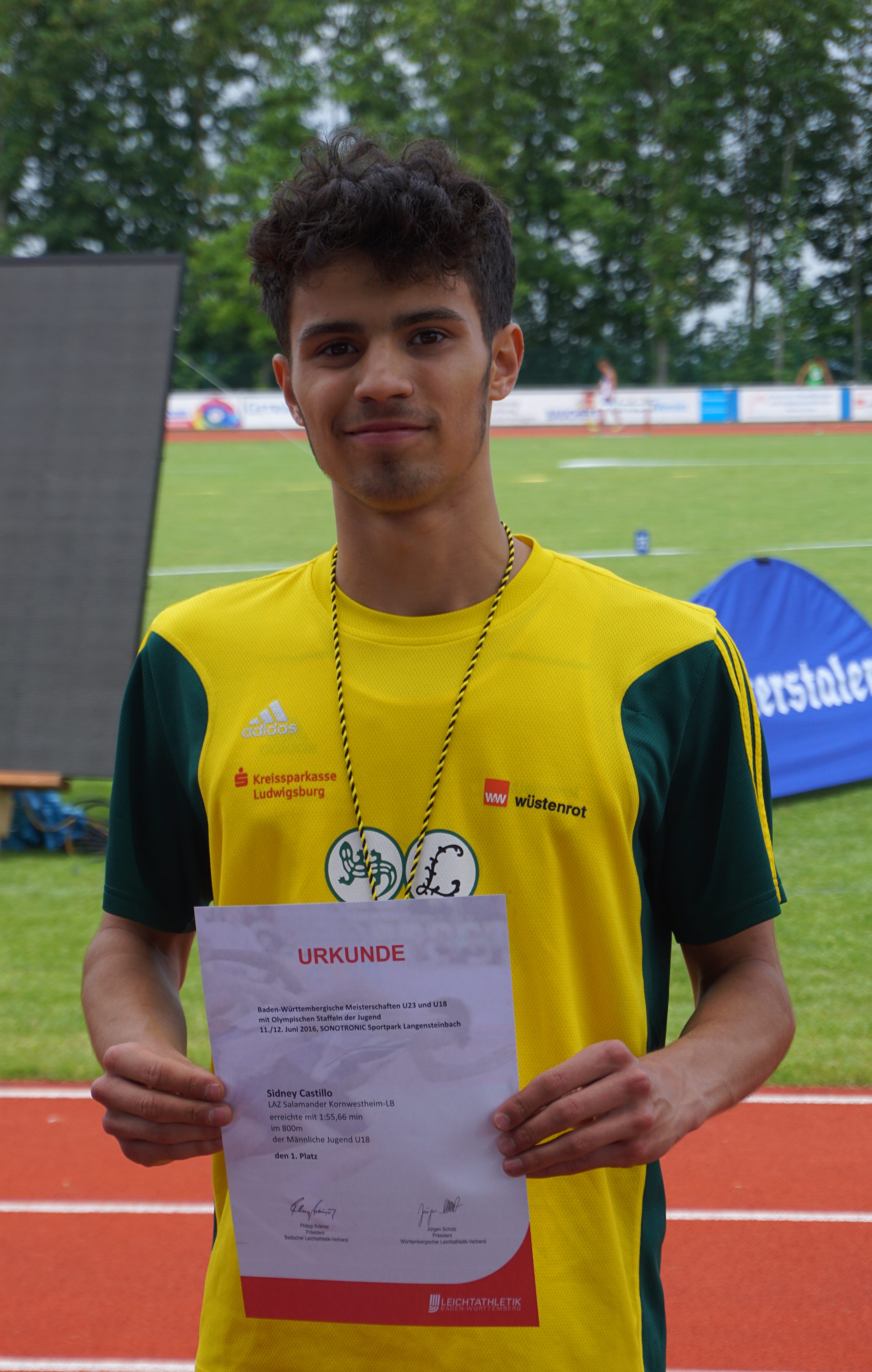 Ein überragendes 800m-Rennen lieferte Sidney Castillo in der Jugend U18 ab! Mit einer taktisch klugen Renneinteilung ließ er der Konkurrenz mit einem langen Schlussspurt keine Chance und holte sich in 1:55,66 Minuten den Titel. Mit dieser Top-Zeit unterbot er nicht nur die Norm für die Deutschen Jugendmeisterschaften sondern steht im nationalen Ranking auf Position acht. Den zweiten Titelgewinn für das Leichtathletikzentrum machte Naemi Benzinger im Weitsprung perfekt. In ihrem vierten Anlauf traf sie das Brett perfekt und segelte auf 5,66 Meter.